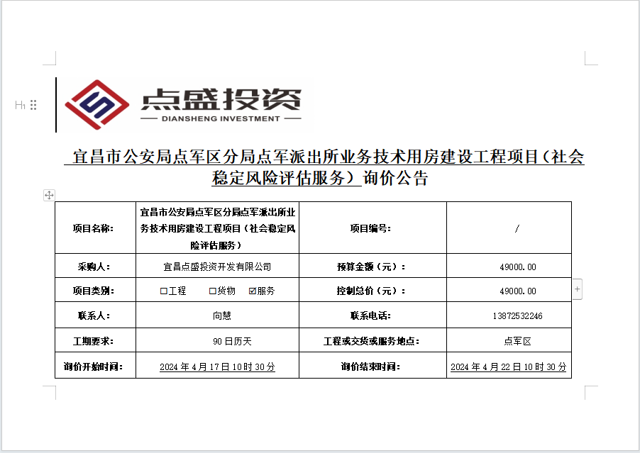 宜昌市公安局點軍區(qū)分局點軍派出所業(yè)務(wù)技術(shù)用房建設(shè)工程項目(社會穩(wěn)定風險評估服務(wù))詢價公告