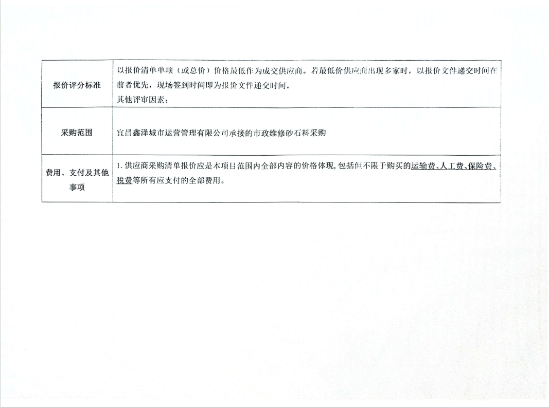宜昌鑫澤城市運(yùn)營管理有限公司市政維修砂石料采購項(xiàng)目詢價公告
