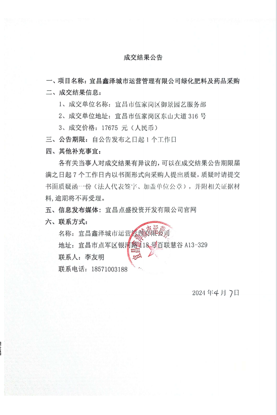 宜昌鑫澤城市運營管理有限公司綠化肥料及藥品采購項目詢價公告