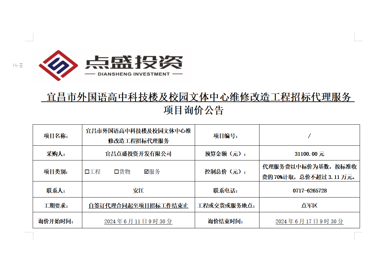 發(fā)布時(shí)間:2024/6/11 來(lái)源:宜昌點(diǎn)盛投資開(kāi)發(fā)有限公司 訪問(wèn):1227