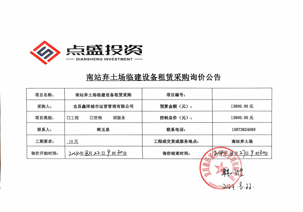 南站路棄土場臨建設(shè)備租賃采購項(xiàng)目詢價公告