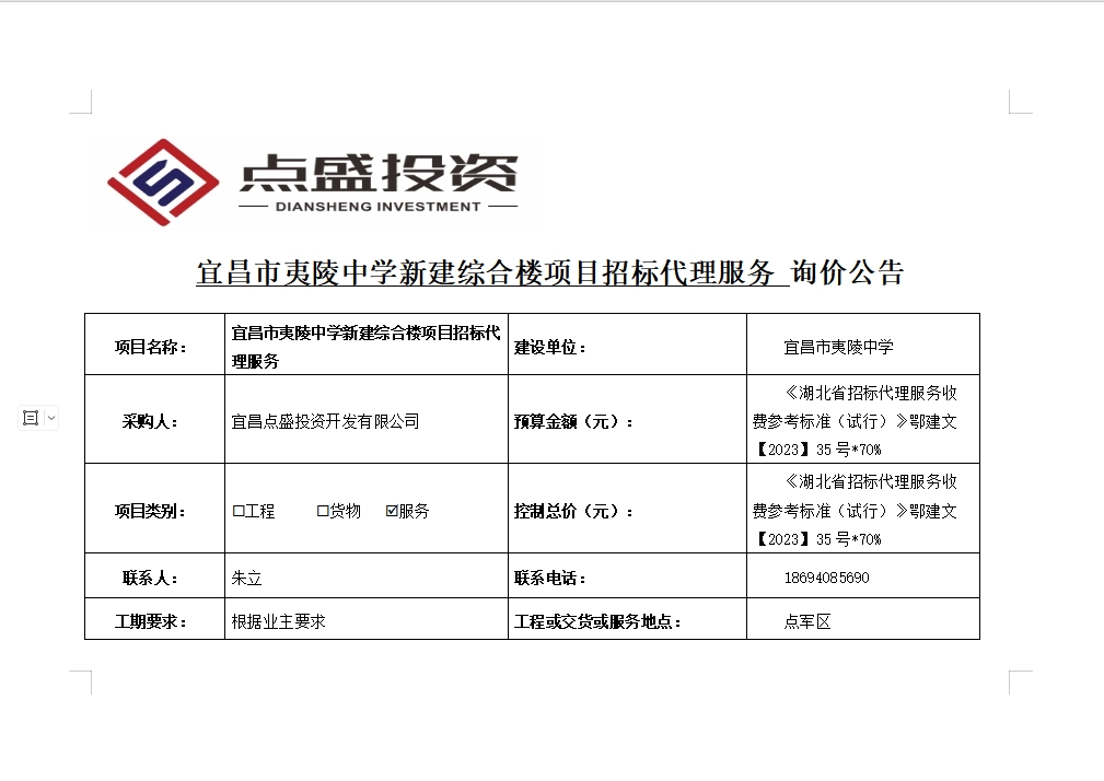 宜昌市夷陵中學(xué)新建綜合樓項(xiàng)目招標(biāo)代理服務(wù)詢價(jià)公告